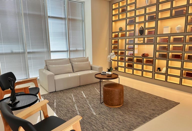 Salas acolhedoras que transmitem paz e serenidade.